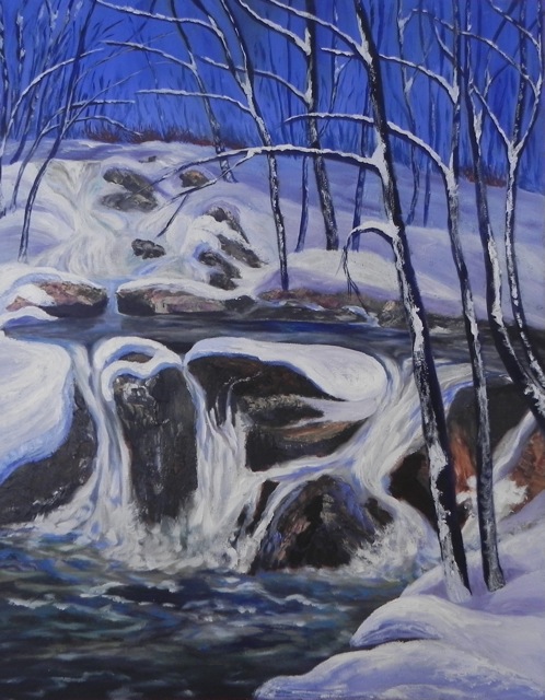 Winter waterfall -30×38.